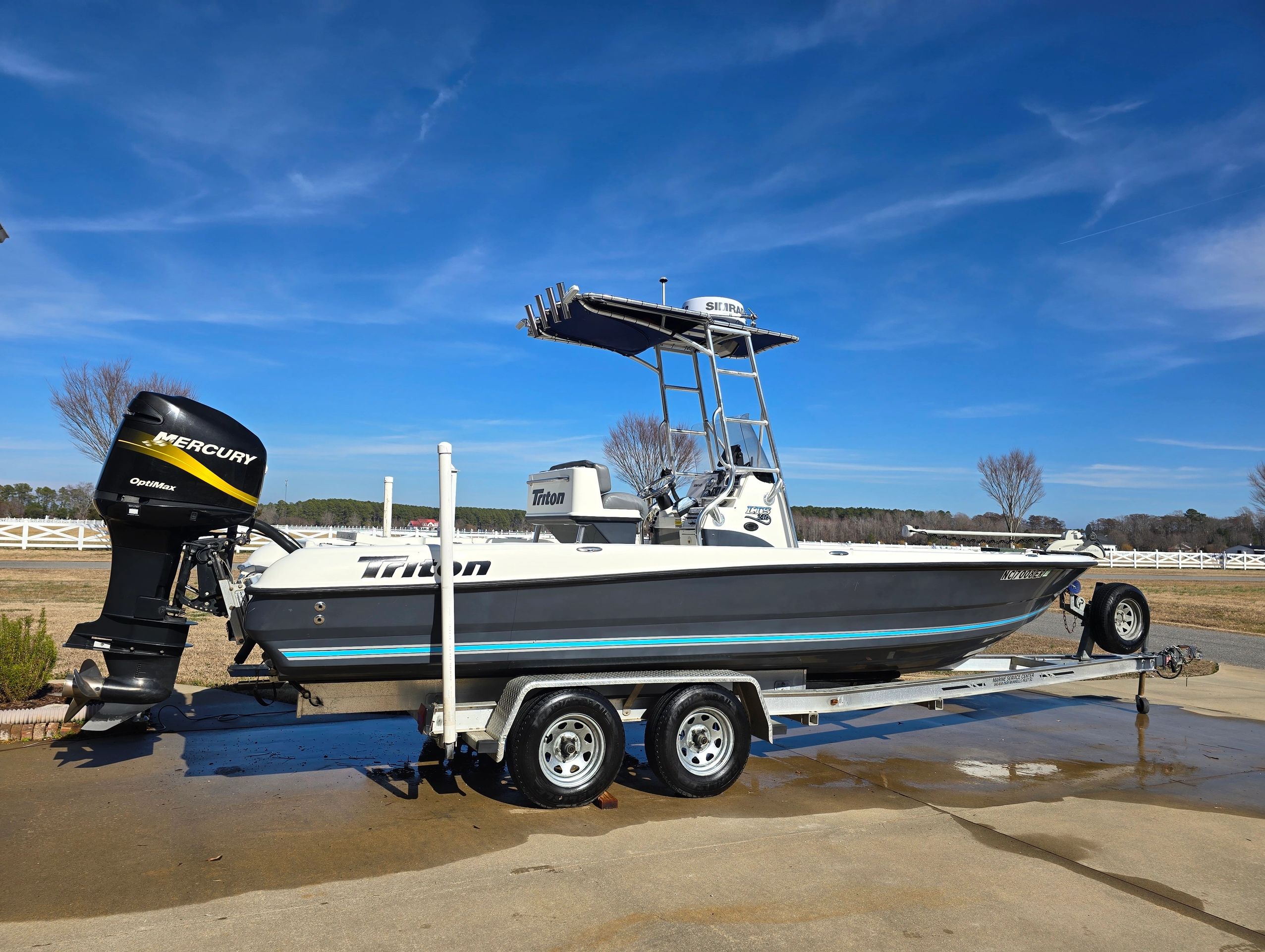 Located at Albemarle Plantation in Hertford, NC. This sleek bay boat is ready for your next fishing excursion! Shallow water to intermediate offshore fishing, this boat is a great choice. State-of-the-art electronics package is a must-see!
